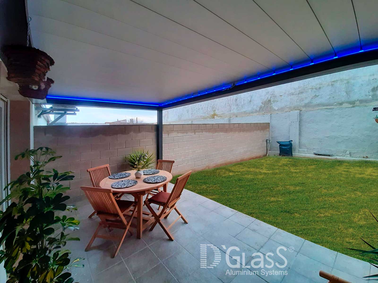 La pérgola bioclimática D`Glass 210 puede adaptarse a todo tipo de disposiciones gracias a su diseño estructural flexible y compacto.